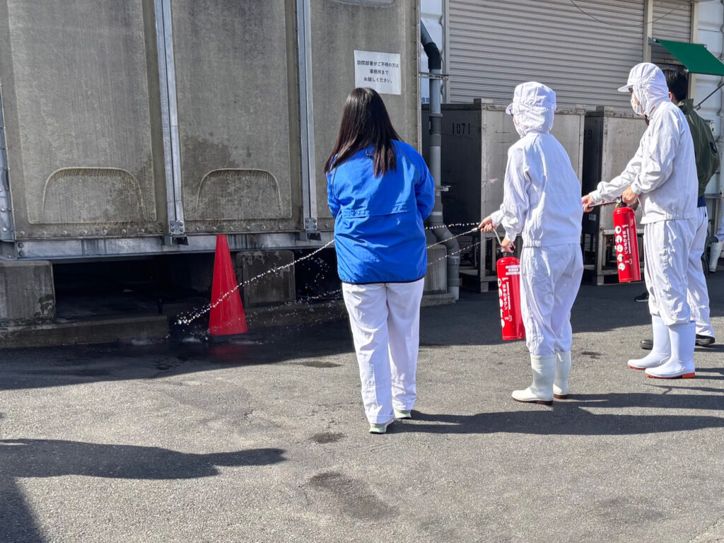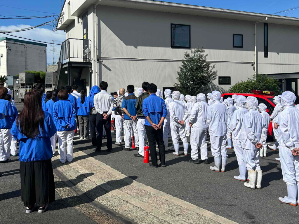 当社では正社員は全員、自社で編成している自衛消防隊に属しており、災害が起こった場合に通報や消火、避難誘導など、どの役割にも欠員が出ないように備えておりますが、火災等発生させないよう、これからも安全に十分注意して製品づくりを行ってまいります。