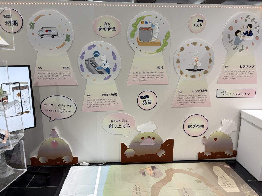 それぞれのチームのブースに行くと、学生のみなさんがまるで当社の従業員のような姿勢で、どういった未来を目指した作品かを丁寧にプレゼンしてくださり、サンフーズジャパンの新たな可能性に気づかされ、多くの学びを得ました。